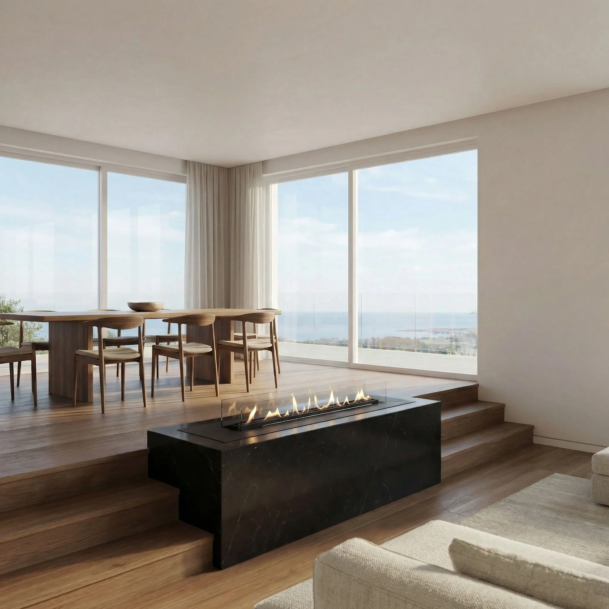 Milan forener et minimalistisk design med smukke, naturlige flammer og skaber et fængende blikfang, der tilfører både visuel varme og en raffineret atmosfære til ethvert rum.