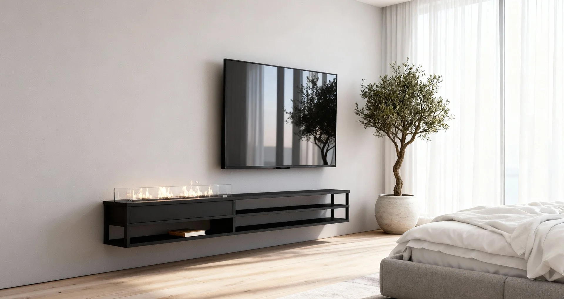 Det væghængte design er både stilrent og fleksibelt, så du kan nemt flytte den væghængte biopejs, hvis du vil ændre på indretningen.